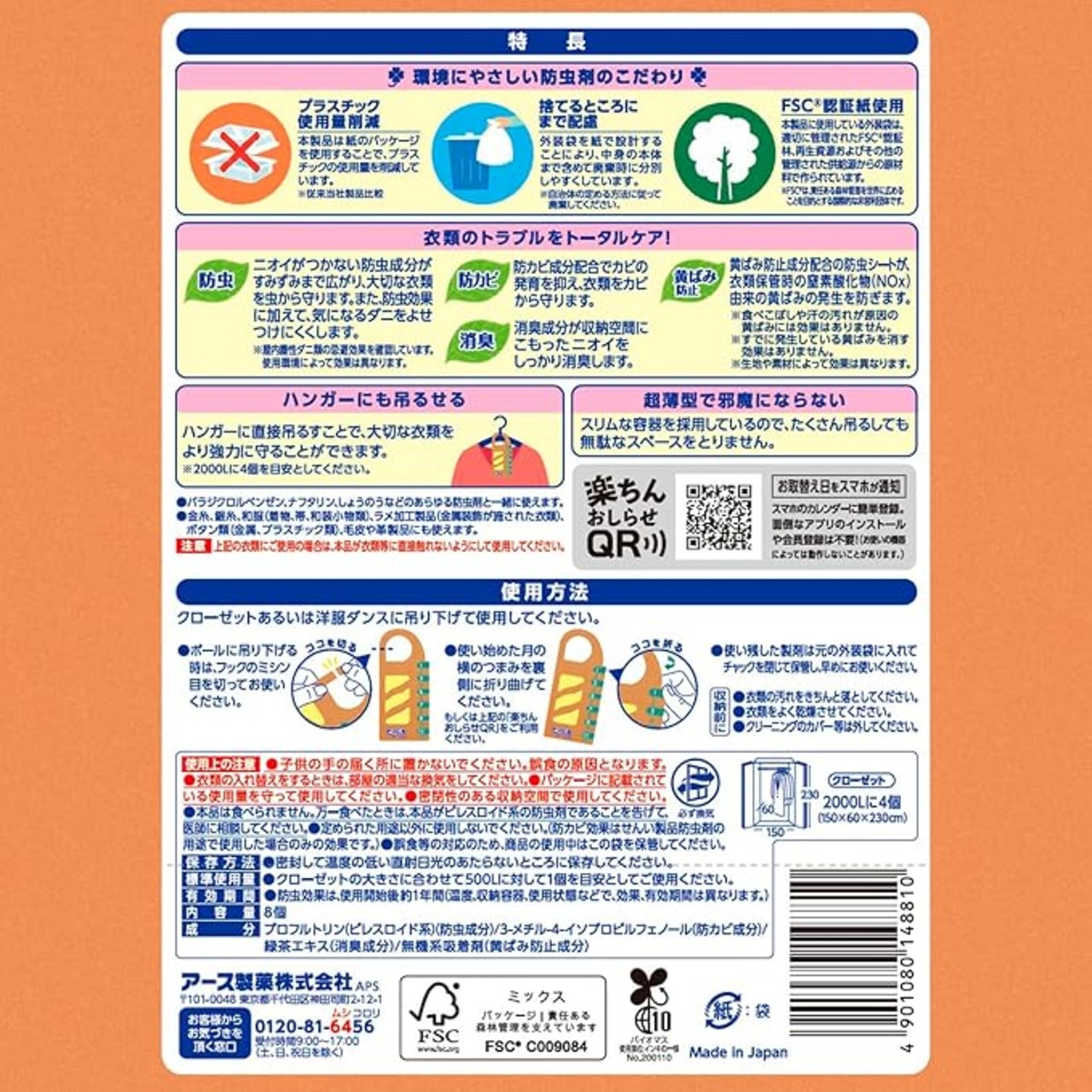●防虫効果は、使用開始後約1年間(温度、収納容器、使用状態などで、効果、有効期間は異なります。)