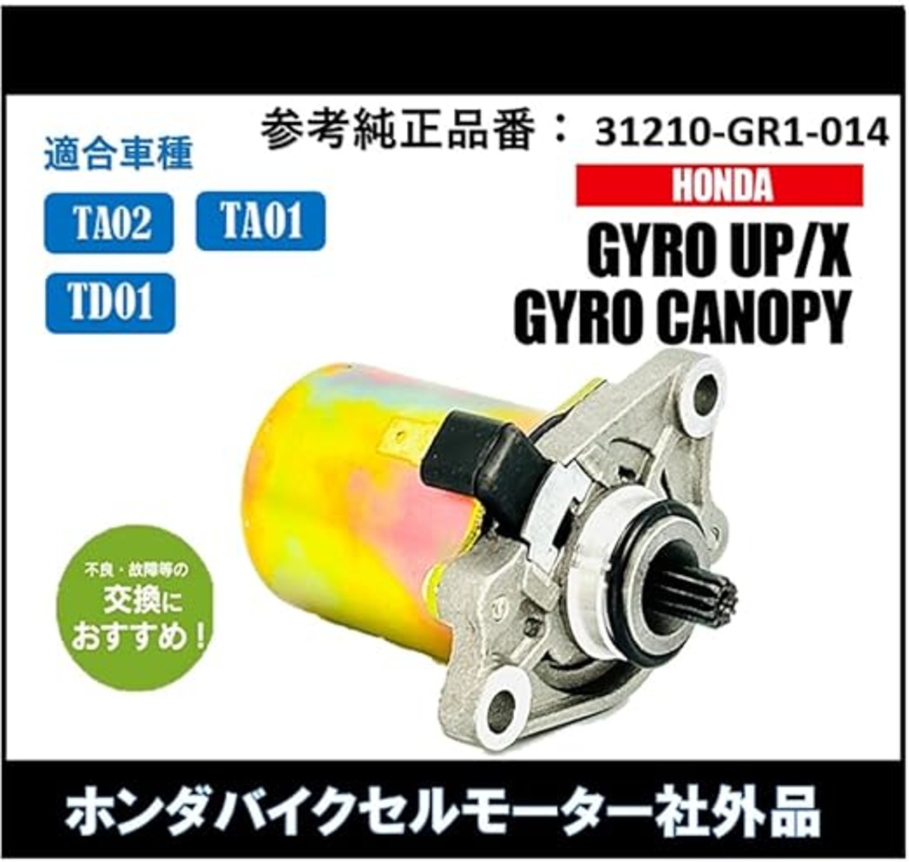 ✅ HONDA 用 ジャイロキャノピー、ジャイロ-X 、ジャイロ-UP 社外品 の オートバイ 用 セルモーター 純正 タイプ 社外品 です。