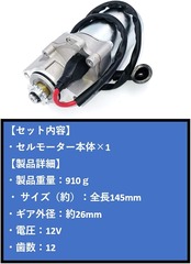✅ セルモーター本体x1個 チューブ線50cm ✅ 商品重量:923g ✅ 全長:147mm ギヤ外径:26mm 電圧:12V