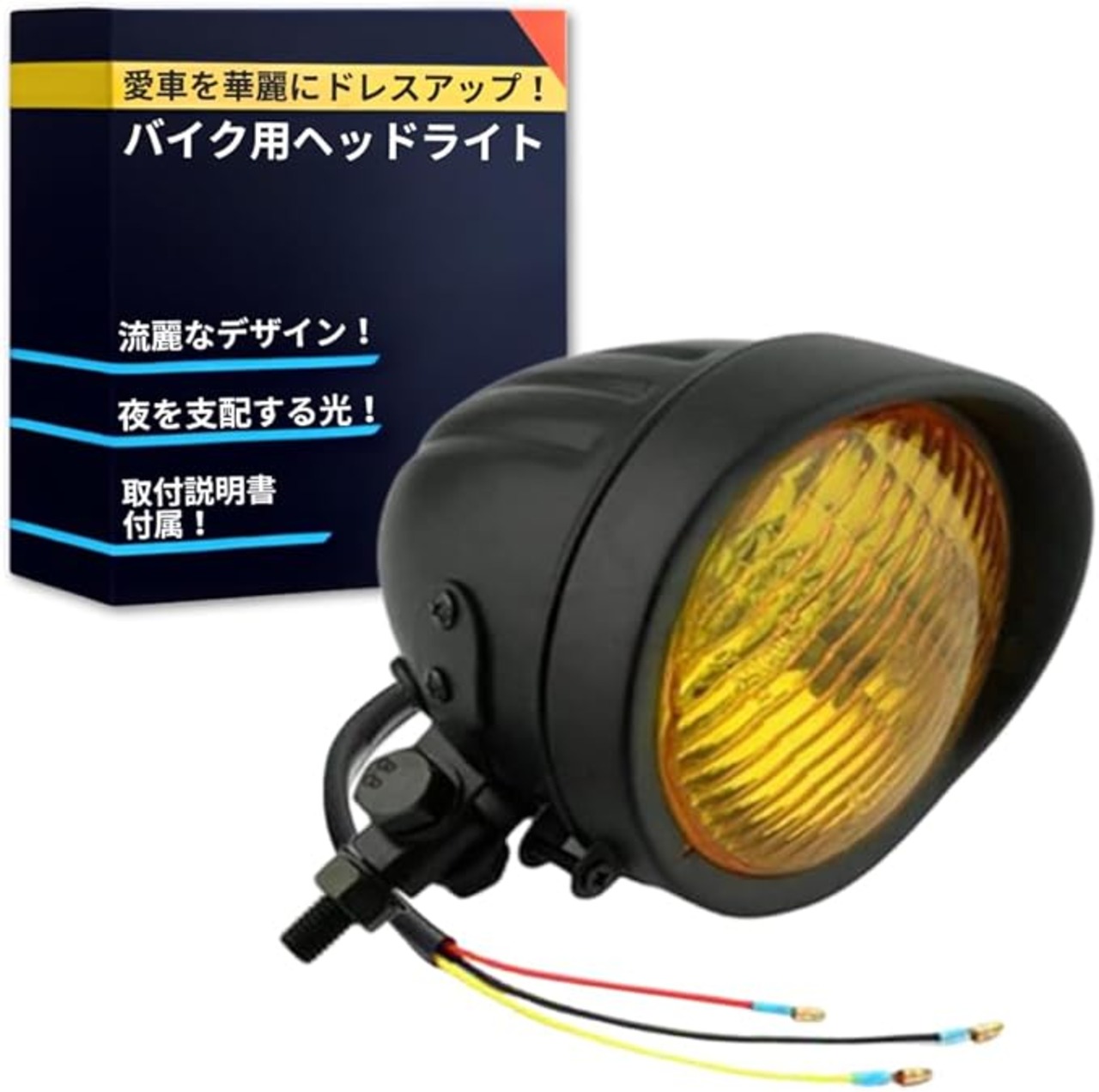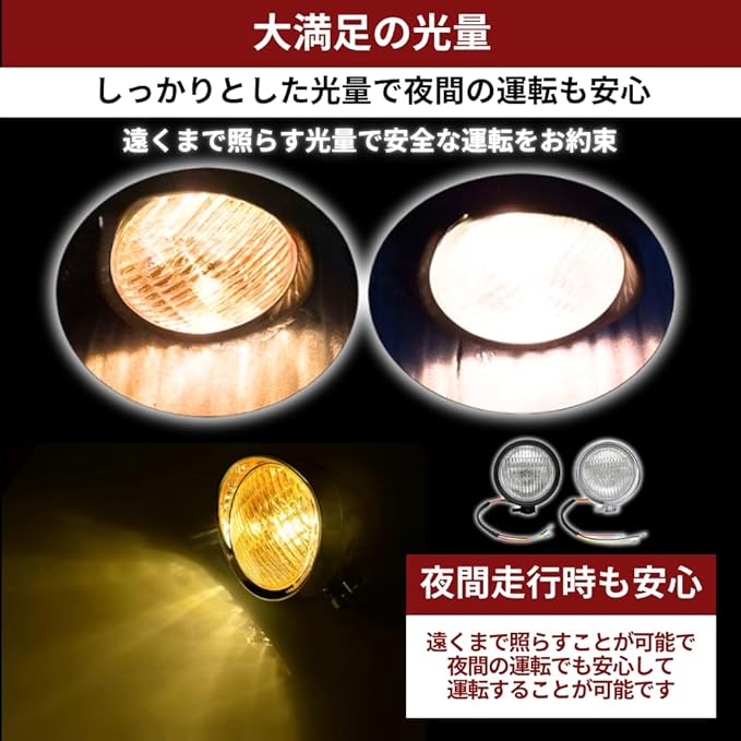 【仕様】取り付けネジ径:10㎜。材質:スチール製。レンズ:ガラス。バルブ形状:H4 60/55W。※取り付けに関する技術的なサポートも行っておりませんので自信のない方は専門家に取り付け依頼してください。 【取扱説明書付属】 ※必ずサイズや形状、仕様をよくご覧になってください。
