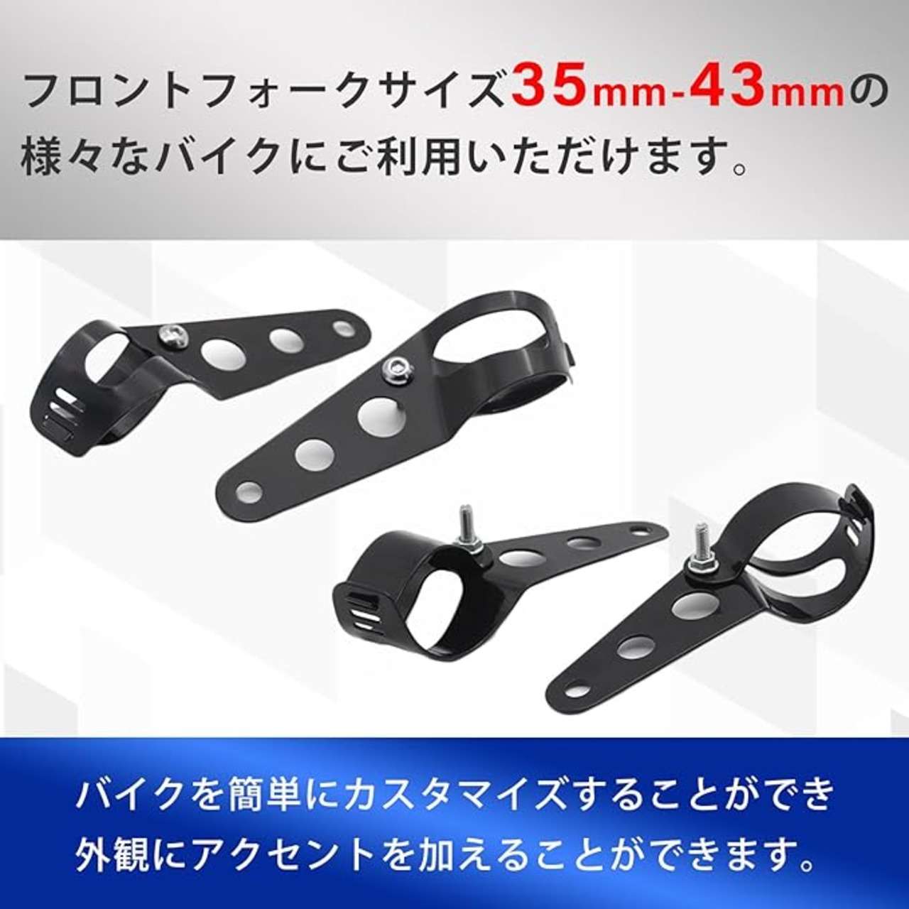 汎用性:ヘッドライトステーは、フロントフォークのサイズが35mm-43mmの様々なバイクにご利用いただけます。また、ウインカー用の穴もあいているのでサイズが合えばウインカーも取り付けられウインカー ステーとしてもご利用可能です。様々なバイクにもサイズ次第でご利用いただけます。車種別などによる取付サポートは行なっておりません。