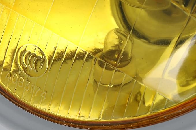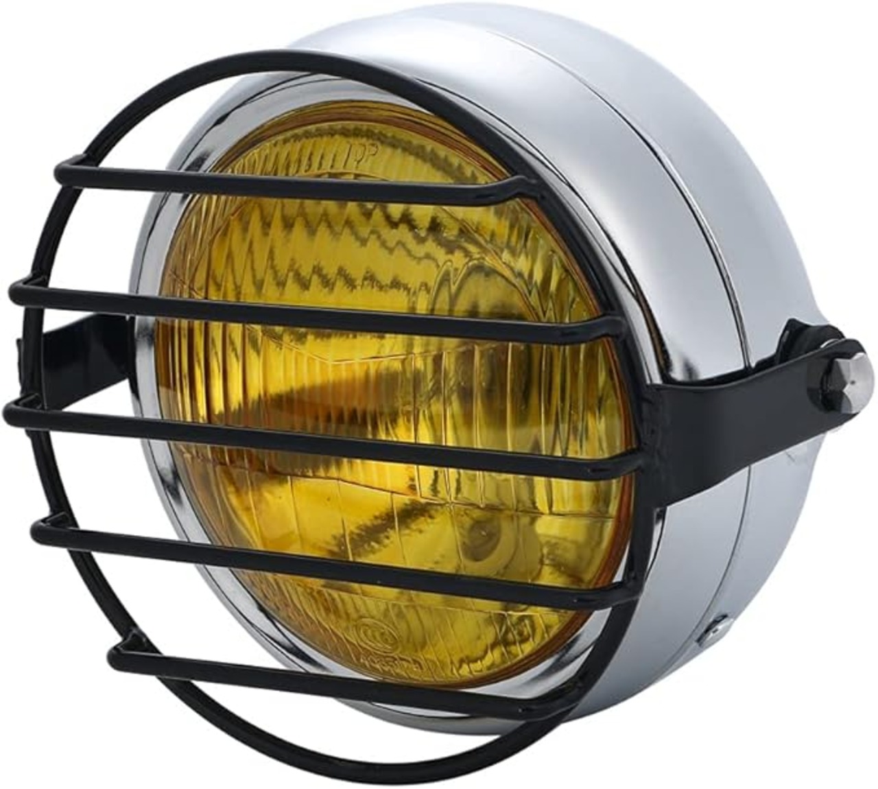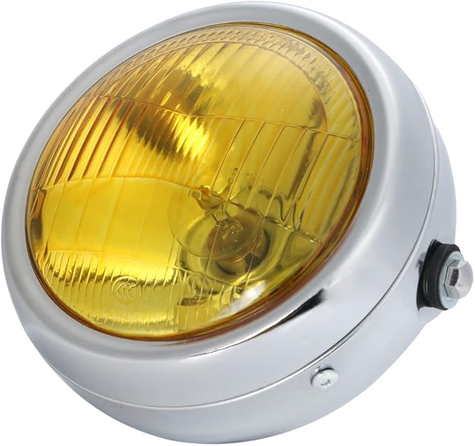 12V ビンテージ ベーツライト ヘッドライト ブラケット 付き ボバー ガード オフロード 5.5インチ H4 TW225 TW250 セロー225 セロー250 トリッカー DT250 XT250 等 汎用 社外品 (メッキボディ イエローレンズ) | KAZESHOP
