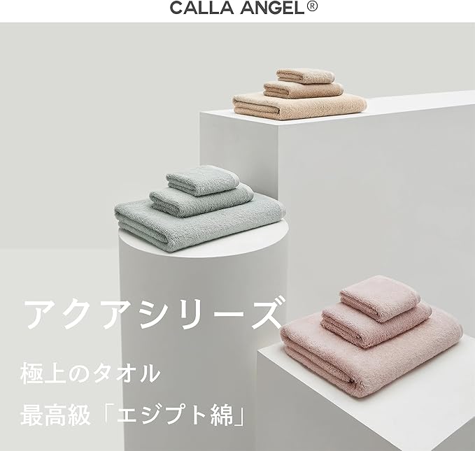 【ご家庭で高级ホテルのような贅沢感】極上のホテルタオル仕様でありながらも、日々ご使用いただけるタオルを目指しました。海外でも人気のNew Yorkブランド「Calla Angel」のアクアシリーズ、世界に誇れる確かな品質のタオルです。素材:手摘エジプト綿100%甘撚糸 /フェイスタオル: 約125g 約80 35cm