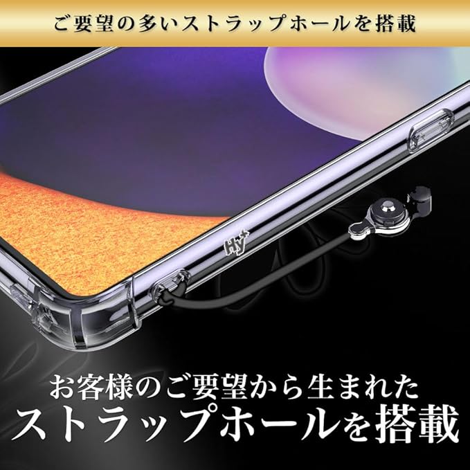 【便利で安全対策にもなるストラップホール付き】お好きなストラップを付けることができるようストラップホールを備えています。ニーズの違いからか海外設計のものにはストラップホールが無い場合が少なくないのですが、ハイプラス製品はオリジナル設計をしてお客様のニーズにお応えしています。ストラップで自分だけのオリジナルスマホを作り上げてみたり、ネックストラップを付けて落下を防いだりと、色々とお役立ていただけます。