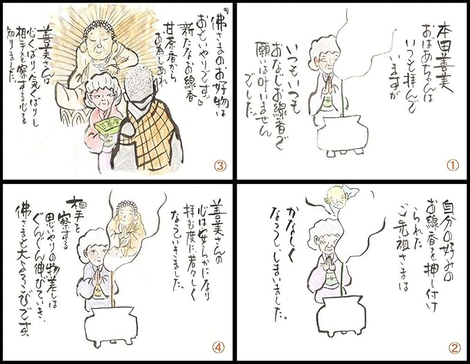 今日も頑張ると誓いを立てる。 玄関のお浄めのお香として。 体調にあわせ応病与薬でお香をして実行する。 大切な方への初盆の振る舞い仏様のご馳走。 仏様のご供養にどうぞと差し上げる。