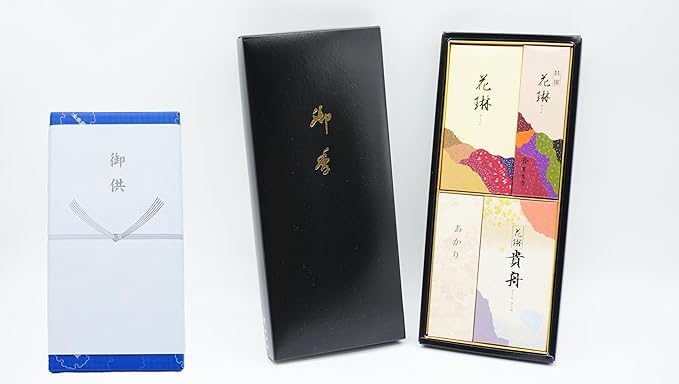 現代的でやさしい白檀の香りが広がる「花琳(かりん)」と白檀の甘く優雅な香りが広がる「特撰花琳(とくせんかりん)」、沈香と白檀をベースにした優美な香り「貴舟(きふね)」の3種類のお線香にダルマローソクを詰め合わせたご進物用お線香です。