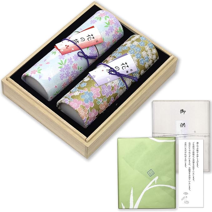 ■ 商品構成 ・花くらべ2種 各1箱 ・桐箱入り贈答仕様 ・線香の長さ:約13.5cm ・燃焼時間:約25分