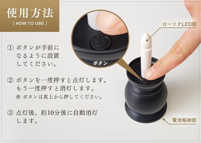 消し忘れの心配無し!火を使わないLEDローソクとLED線香のセット。小さなお子様がいるご家庭や一人暮らし、ペットがいるご家庭に。ミニサイズで、コンパクトな仏壇、神棚にも。約10分間の自動消灯機能付。線香の本数は調整可能です。