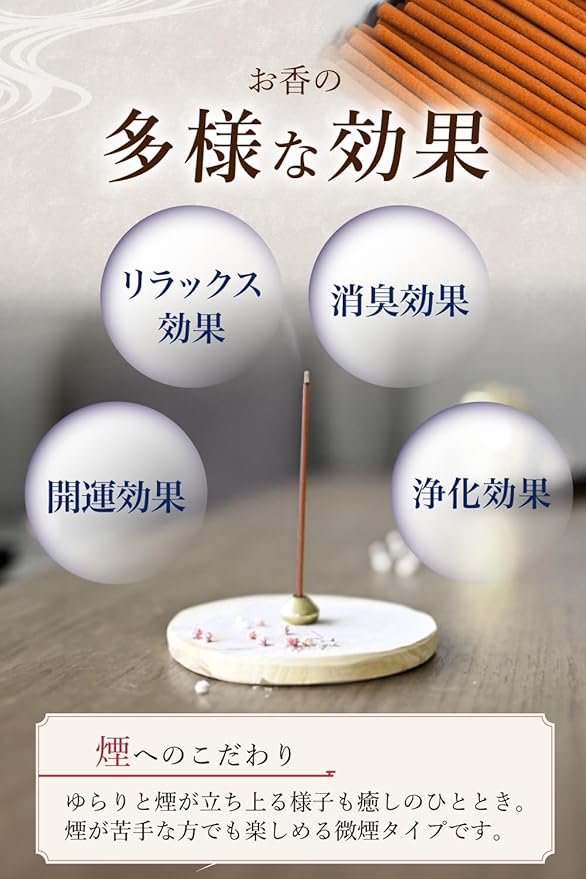 商品特長 リフレッシュ, リラクゼーション, 睡眠導入, 空気の浄化, 負のエネルギーを取り除く