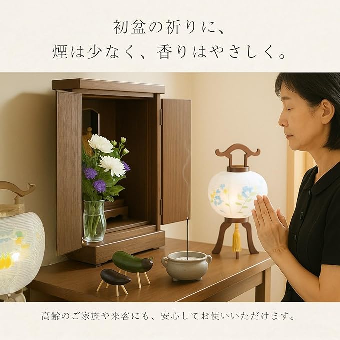 ■ 香りと品質の特長 ・創業90年の老舗による調香のハーモニー ・白檀とフローラル天然香料を調合したやさしい香り ・煙が少なく、お部屋の空気を汚しにくい設計