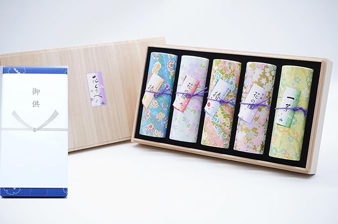 花くらべ五種香(桜・紅梅・竹炭・優美・甘美) 高級桐箱入り お線香セット 煙の少ない微煙タイプのお線香 包装・御供入り熨斗付き お盆・喪中・喪中御見舞・ギフト・進物・贈答用線香 【創業文政三年永楽屋】 | KAZESHOP