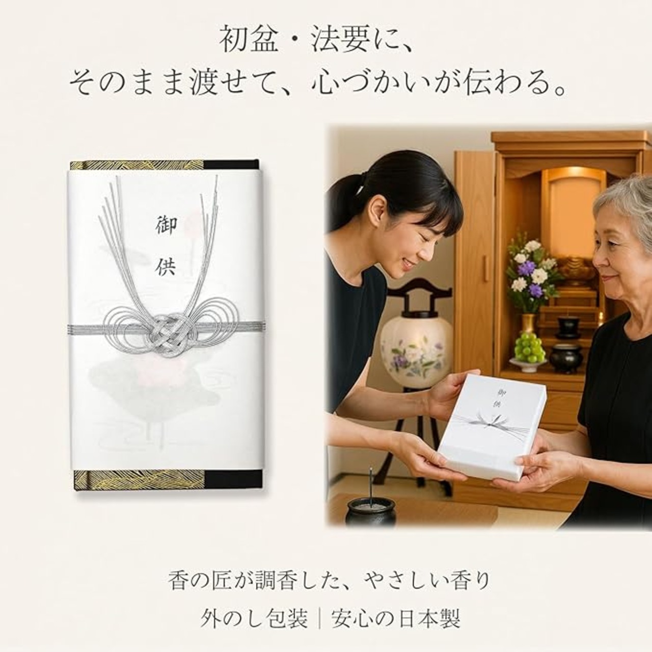 ■ 贈答対応 ・進物用包装済 ・御供の表書き ・外熨斗 ・金額非表示でご遺族宅へ直接お届け(カート画面でギフト設定の操作が必須)