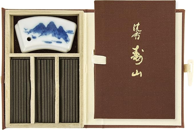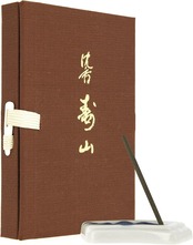 貴重な香木・沈香(じんこう)を用いた「沈香寿山」です。さっぱりとした味わいの沈香をはじめ、白檀・生薬系香料を豊富に使用しています。天然素材の香りの活きたきりりと深い香りです。穏やかにお部屋に香りが広がります。