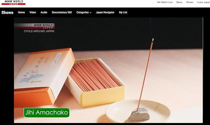 2024年3月16日(土)NHK WORLD 『CYCLE AROUND JAPAN.Jihi Amachako Awaji Baikundou incense sticks.名物 淡路梅薫堂のお線香慈悲甘茶香。仏様のお慈悲をいただくような甘く素晴らしく いい香りのお香 慈悲甘茶香 110g 線香 バラ詰 淡路梅薫堂の高級線香。疲れの刺を抜き、優しい気持ちを授かる白檀と漢方薬を厳選しこだわりぬいて調合しました特上品。4月8日にお釈迦様のお誕生を誕生仏に注いでお祝いする甘茶を厳選し用いた美しい香りのお線香【慈悲甘茶香】。 嗜好品のお香ではなく、献上品のお線香は先に仏様に美しい姿で好物を供えてからお願いし、そのお下がりを頂くのが神仏の定説です。 自分の我そのままから仏様に成られたご先祖様が戻られるお盆などの振る舞いに、美しく化粧をして(神楽のように好まれるもてなしの舞を舞う)、お盆という行事に乗せ仏様にご馳走して差し上げると仏様のご馳走願いを叶うといわれ故人に、又ご家族に仏様のご加護が得られ世の平和がもたらされるといわれます。 目配り、気配り、心配りの目が開いて道徳の伝統の山が築かれ、目上を敬う秩序が保たれ己忘利他行になり、残された子孫がご先祖様へ良い行いを回し向ける功徳になるという仏様のご馳走願いを叶うといわれる名物の好まれる甘茶香。 仏様として戻られるご先祖様への振る舞いに、思いやりの物差しを伸ばし仏様のお好みの甘茶香をお盆という行事に乗せお客様を気品と真剣を持って迎える盛大なおもてなし。 目配り、気配り、心配りご馳走して差し上げるとこの上ない功徳になり、人格が磨かれ高まります。 仏様のご馳走願いを叶う。創業から百年以上の歴史を誇る淡路梅薫堂製造。長年の伝統製法を大切にお線香を作り続けております。全国の生産量七割りを占める日本一のお線香生産地は淡路島西海岸にあります。中でも全国唯一といえる線香屋が軒を連ねるかおり風景100選の一つ江井。良いお線香を作るのに相応しい、偏西風を利用する西側を向いた県道31号線のお線香に好まれる一番といえる良い場所で丁寧に製造してお届けします。ご進物用・ギフト・贈答用お線香は、大切な方へ想いを形に淡路梅薫堂のこだわりお線香の香りに託してどうぞ。
