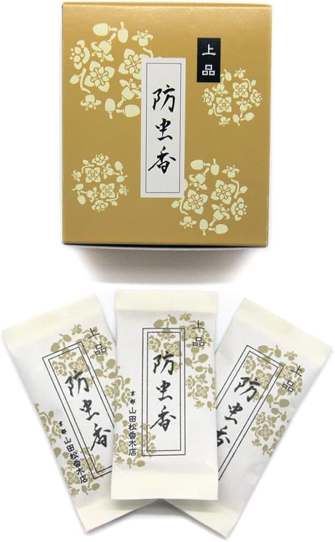 防虫効果のある白檀と龍脳を調合し、調製いたしました。さっぱりとした香りです。 お着物、衣装箪笥の他、書画や軸、お人形等にも幅広くご使用いただけます。 衣替えの時期にもおすすめです。 ◎入替時期の目安:半年~1年を目処にお取替えください。 ◎入替時など、適宜置き場所を変えてご使用ください。 ◎他の防虫剤との併用はお避けください。