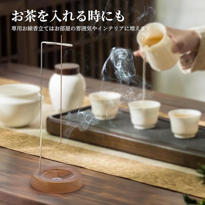 【長さ24cmまでの線香に適用】従来のガラスカップのデザインが不要して、酸素不足による炎の消えることと防ぎます。吊り下げクリップは、より太いインセンススティックも収容できるように設計されています。お気に入りの香りで満たされたリラックスした雰囲気を作り、空間を楽しんでください。