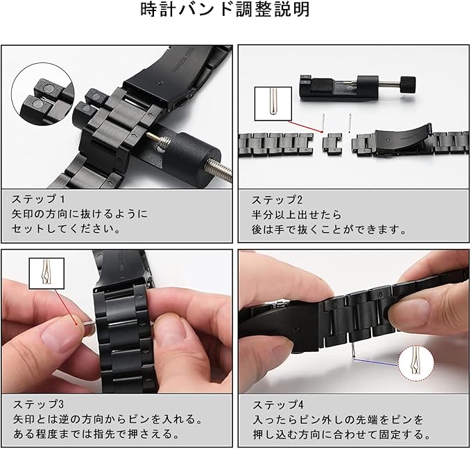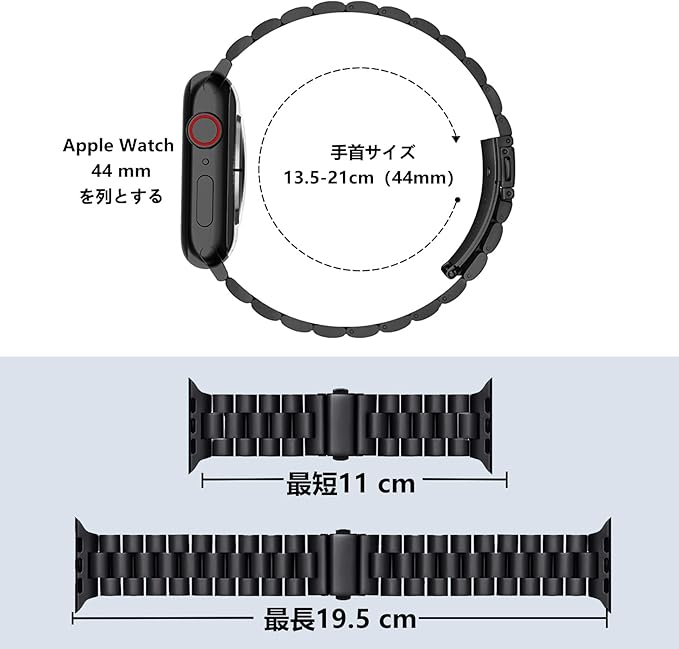 【長さ調節用の器具付き】:Apple watch seriesベルトテンレスには長さ調節用の器具が付属しており、手首のサイズに合わせてベルトの長さを調整できて便利です。ベルト調整範囲は11cm 〜 19.5cmです。 (※Apple watch 本体は含みません。)
