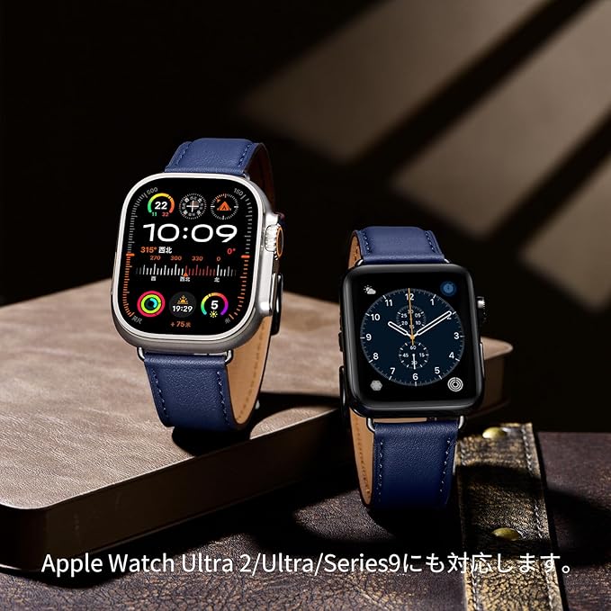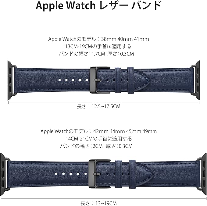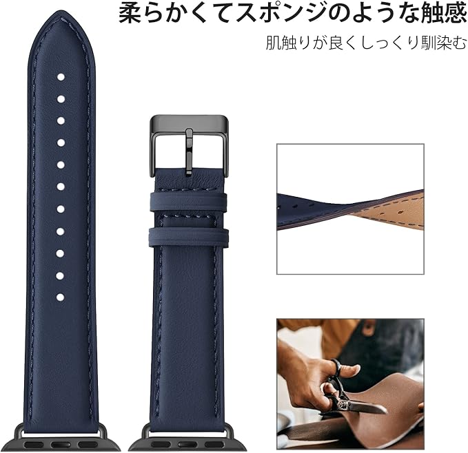 コンパチブル アップルウォッチ バンド 革 46mm 42mm 44mm 45mm 49mm 40mm 41mm 38mm コンパチブル Apple Watch バンド 本革 レザー ビジネス 男女兼用 コンパチブル iWatch SE3/SE2/SE/Series11/10/9/8/7/6/5/4/3/2/1に対応(ダークブルー・ブラック) | KAZESHOP