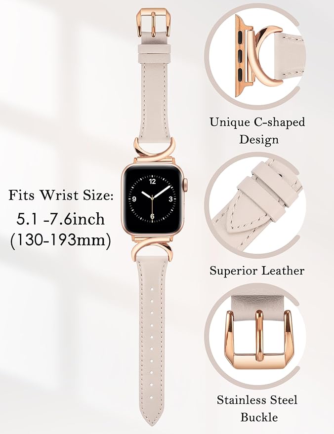 コンパチブル Apple Watchバンド アップルウォッチベルト レザー 本革製 レディース 蒸れない 長さ調整 41/40/38/42mm おしゃれ 高級レザーバンド Apple Watch Ultra2/Ultra/S10/9/8/7/6/5/4/SE2/SEに対応 柔らかい 入学/誕生日/バレンタインデープレゼント【 スタ-ライト+ローズゴールド】 | KAZESHOP