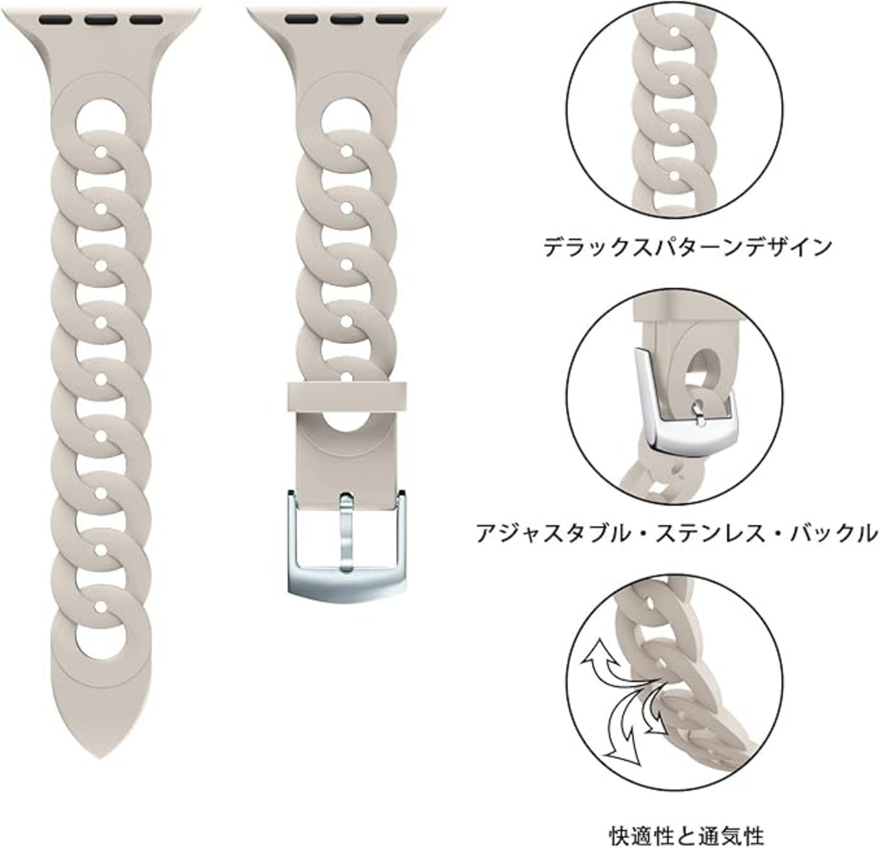 コンパチブル アップルウォッチ Apple Watch バンド46mm38mm40mm41mm42mm44mm45mm49mmプリストバンドサークルチェーンデザインiWatch 10 9 8 SE 7 6 5 4 3 2 1柔らかいシリコン素材 防汗 細身 透气 おしゃれ スリムスポーツバンド(41mm 40mm 38mm 42mm(Series 10),スターライト) | KAZESHOP