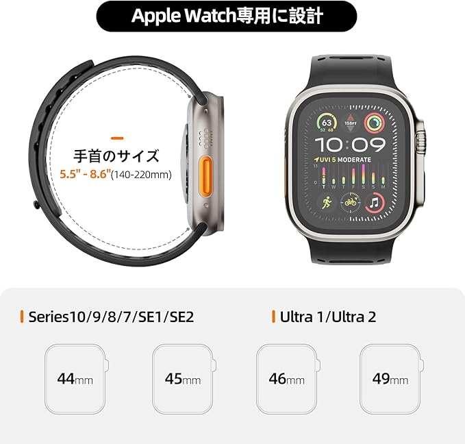 【対応機種】コンパチブルアップルウォッチ バンドは、Apple用 Watch Ultra/Ultra2/Ultra3 Series 11/10/9/SE/8/7/6/5 49mm 46mm 45mm 44mm に対応しています。(本製品はバンドのみです、本体は含まれません)。