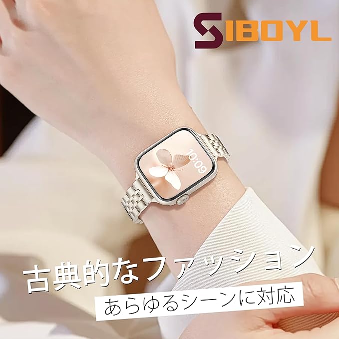 [SIBOYL] 極薄い対応アップルウォッチ バンド 41mm 40mm 38mm 42mm (Series 11 10)、かわいいおしゃれ、コンパチブルApple Watch バンド ステンレス、上質な質感、対応プルアップルウォッチベルト、対応Apple Watch 11 10 Se 9 8 7 6 5 4 3 2 1-スターライト | KAZESHOP