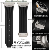 【対応機種・サイズ】このアップルウォッチ バンドはApple Watch Ultra 2 49mm / Ultra 49mm;Series 10 46mm;Apple Watch Series 9 8 7 45mm;SE (第2世代) 44mm / SE 44mm / Series 6 5 4 44mm / Series 3 2 1 42mmに対応できます。手首サイズは165mm-235mmの方に適します。長さが自由に調整可能です。購入前に、お手首の周りを測定してください。