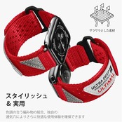 【高品質材料・ステンレス製尾錠】耐久性のあるナイロン素材で作られたアップルウォッチ用バンドです。ブラックメッキが施されたステンレス製尾錠とクラシックなシームレス縫い目が採用されており、Apple Watchをスタイリッシュでエレガントな外観に仕上げています。