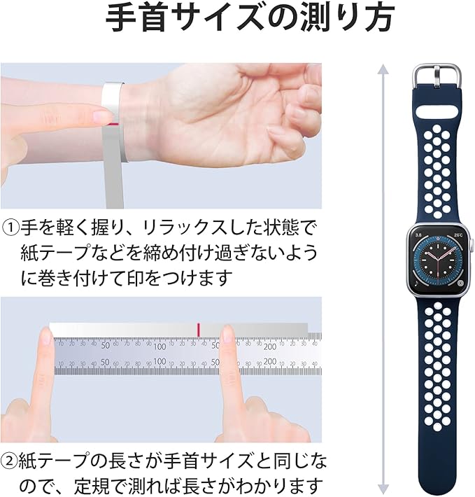 エレコム Apple Watch (アップルウォッチ) バンド 41mm 40mm 38mm [Apple Watch 8 7 SE2 SE 6 5 4 3 2 1 対応] シリコン アクティブタイプ 通気穴 ネイビー ホワイト AW-40BDSCNNV | KAZESHOP