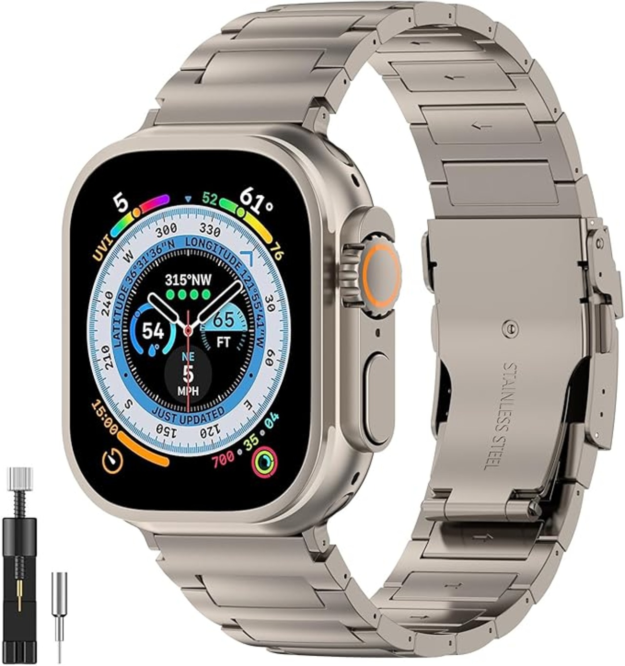 [YOFITAR] for Apple Watch バンド チタン合金製 軽量 49mm/45mm/44mm/42mm/41mm/40mm アップルウォッチ 交換ベルト Apple Watch Series Ultra2/Ultra/10/9/8/SE2/7/6/SE/5/4 対応 iWatchバンド Apple Watch アクセサリー 長さ調整器具付き(チタン,40mm/41mm/42mm) | KAZESHOP