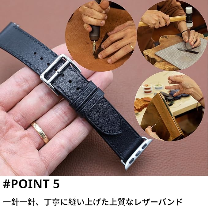 Apple Watch レザーバンド 100%ハンドメイド。アップルウォッチ 8 7 6 5 4 3 SE1 SE2 ultra に対応