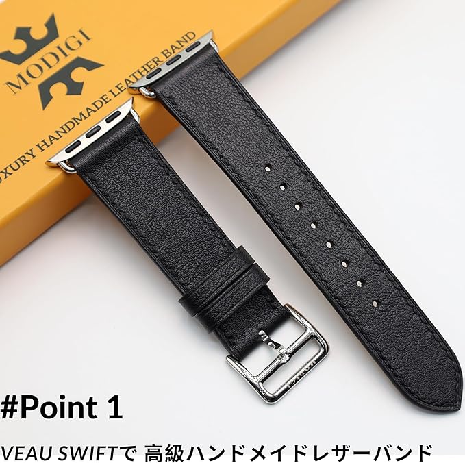 MODIGI コンパチブル Apple Watch用 バンド アップルウォッチ バンド レザー ベルト 本革 高級手作り Veau Swift 皮ベルト 40mm 41mm 42mm 44mm 45mm 46mm 49mm Ultra 1/2/ SE 1/2/3シリーズ10 9 8 7 6 5 4 | KAZESHOP