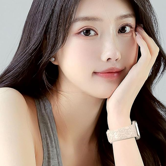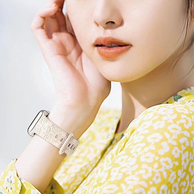 [SIBOYL] ロマンチックなカメリアベルト シリコン対応アップルウォッチ バンド レディース42mm(Series 11 10) 41mm 40mm 38mm 、調整ツール不要、トレンディとヴィンテージの融合、可愛いコンパチApple Watch ベルト、あっふウォッチバンドスポーツ対応Apple Watch 11 10 Se 9 8 7 6 5 4 3 2 1-スターライト | KAZESHOP