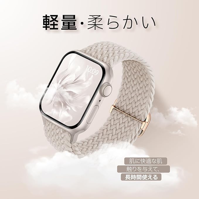快適フィット感:伸縮性のあるアップルウォッチ バンドで一日中快適に。再生ポリアミド製の織物風編み上げ構造が、肌なじみの良さ・軽量性・洗濯耐性・通気性を実現。ジムトレーニング、会議中、自宅リラックスタイムまで、装着感を忘れるほどの軽やかさです。
