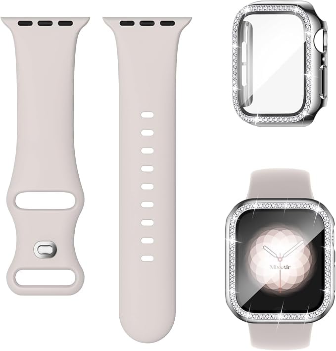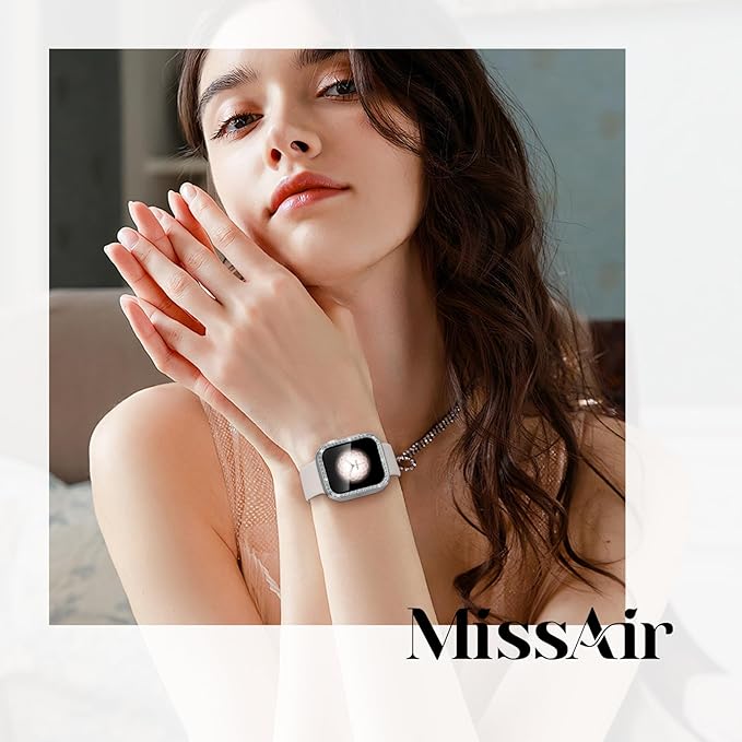 [Missair] コンパチブル Apple Watchと互換性のあるバンド シリコン アップルウォッチ バンド Apple Watch キラキラ カバー付き 互換用のApple Watch バンドとケース 一体型 全面保護 ダイヤモンド 光沢感 オシャレ レディース Series 6 5 4 SEの40mmに対応 | KAZESHOP