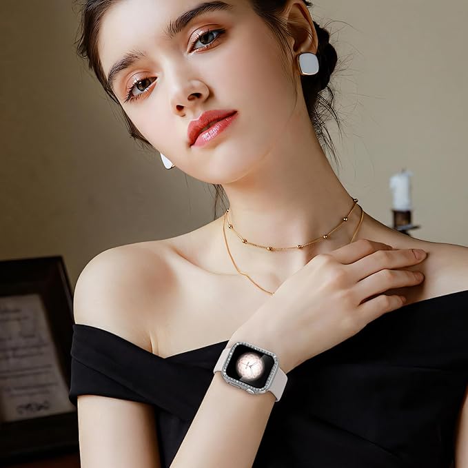 装飾品として素敵:すぐに目に入るように、かなり可愛いアップルウォッチ シリコンバンドとキラキラカバーです。日常にどんなの服にも合わせやすいです。ケースをつけたまま、Apple Watchの美しさと優雅な質感を引き立てます。