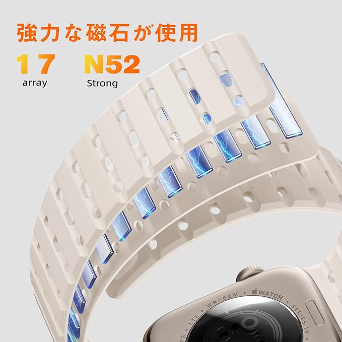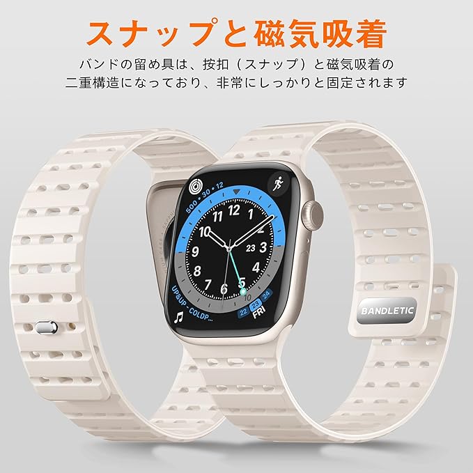 【強力なマグネット】このアップルウォッチ用の バンド マグネットは工具なしで簡単に装着できます。 特別にデザインされた固定クラスプと強力なマグネット吸着は、手首に合わせて自由に調整できて、取り付け簡単になります。あらゆる手首のサイズにぴったりフィットし、快適な装着感をお楽しみいただけます。