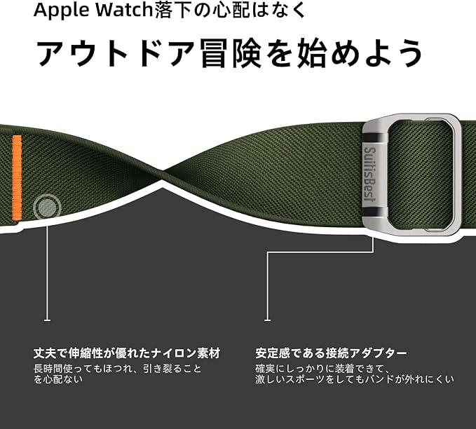【上質な肌に優しい素材】 このApple Watch バンドナイロンは耐久性と肌に優しいが高いナイロン生地を使ったので、快適な着用感を提供します。耐摩耗性も高いです。丈夫で割れにくい、色褪、耐久性が抜群です。調整バックルは上質な316Lステンレス鋼で作られて、頑丈で型崩れしません。錆を防ぎ、肌に害がないし、金属アレルギー方でも安心に使えます。