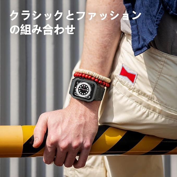 【対応機種&改良点】ムービングフォートレスプロシリーズは44mmのApple Watch シリーズ6/SE/5/4に対応できます。改良後のムービングフォートレスプロシリーズは44mmと45mm二つのサイズに分かれています。ご注意:画面保護フィルムがないですよ。この一体型バンドの重さは135g、質感と着心地も前のバーションよりも良くなって、人の肌により優しいです。