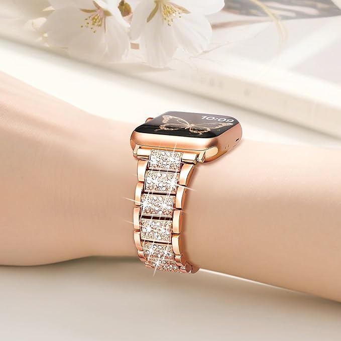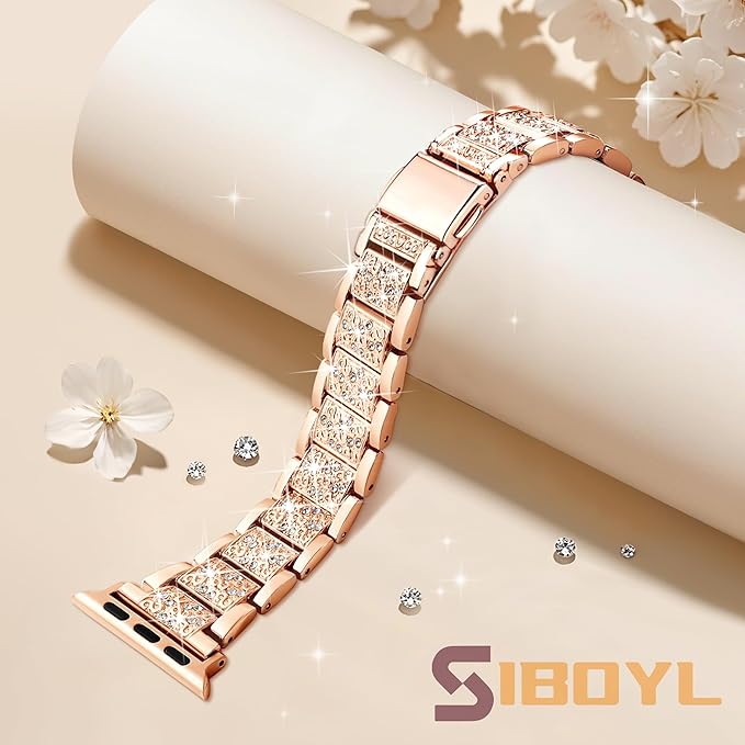 [SIBOYL] クラシック互換うアップルウォッチ バンドキラキラ46mm 45mm 44mm 42mm(Series 3 2 1) 49mm、ワンタッチ着脱、おしゃれ絶妙対応Apple Watch ベルト、かわいいのあっふウォッチバンド レディース、対応Appleウォッチ ベルト11 10 Se 9 8 7 6 5 4 3 2 1 Ultra 3 2 1-ローズゴールド | KAZESHOP