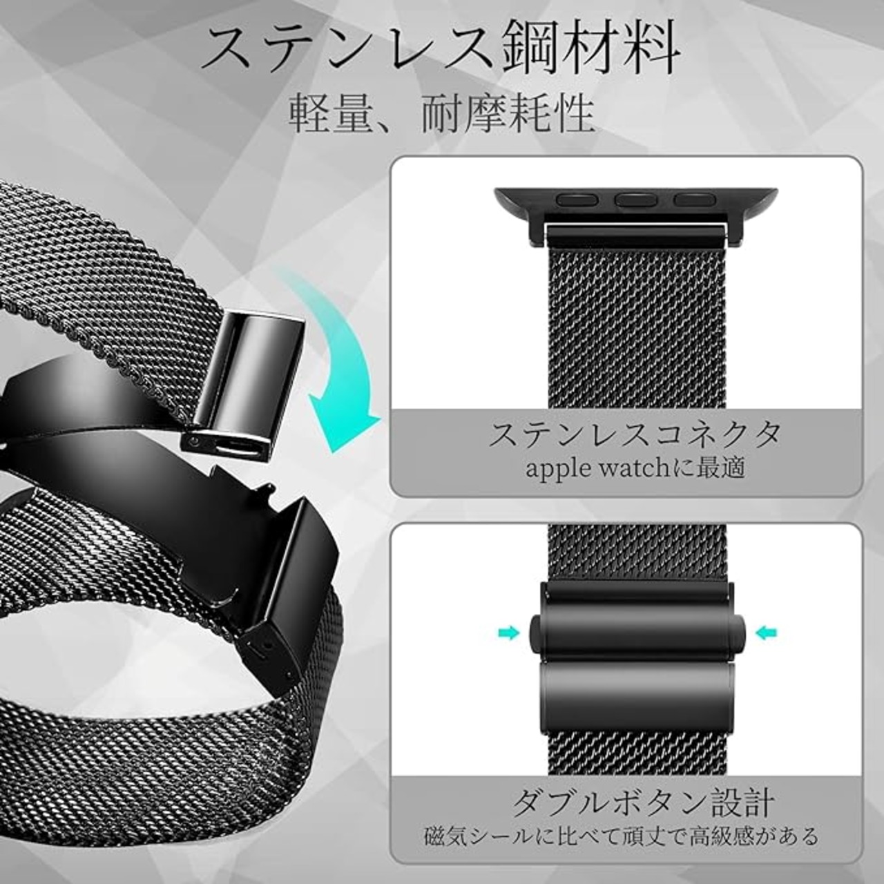 【 iWatchに幅広く対応 】:iWatchステンレススチールバンドは、Apple Watch 38mm 40mm 41mm42mm と完全な互換性があります Series 9、Ultra 2、SE、Ultra、Series 8 Series 7、Series 6、Series 5、Series 4、Series 3、Series 2、Series 1のすべてのスタイル。すべてのApple Watchバンドの完璧な代替品です。