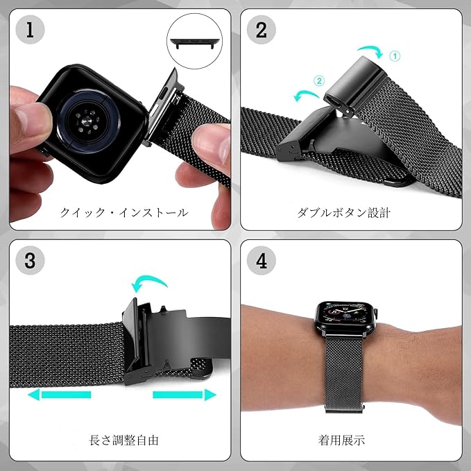 [プロセスと材料]:アップルストラップは高品質の316ステンレススチール素材を使用し、高い硬度と耐摩耗性を備えています。 電気メッキの表面処理、高級、高貴、耐久性があります。 職人技、デザイン、美観など、製造過程で細部まで考慮されているからです。 ハイテクな表面とラグジュアリーなデザインが、あなたのApple Watchをよりファッショナブルにします。