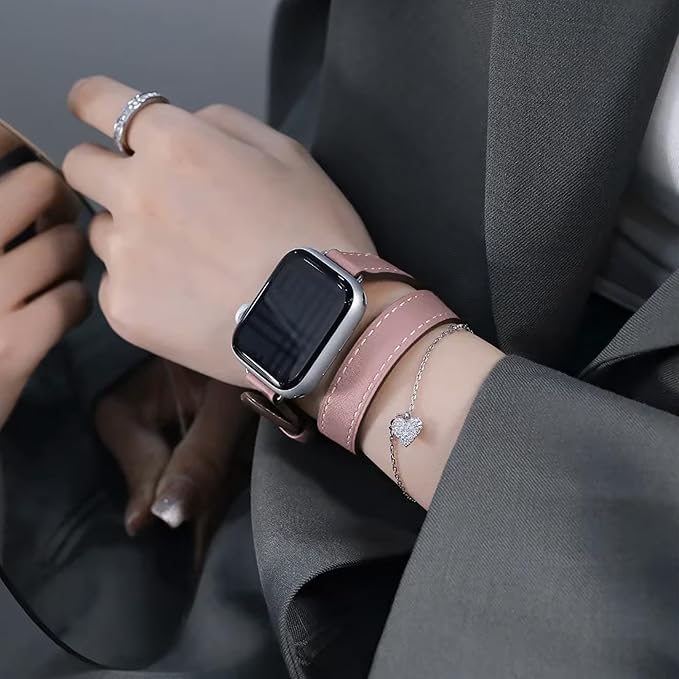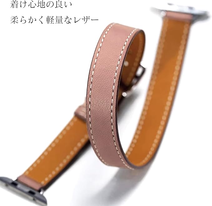 長いレザーバンドを二重巻きにして使用するApple Watchバンド。ブレスレット感覚で使用でき、ファッションのアクセントとしても楽しめるデザインで、スリム幅なベルトは手首を華奢に、そして二重巻きで華やかな印象にしてくれます。