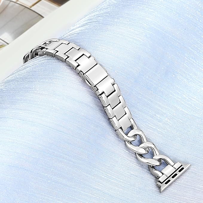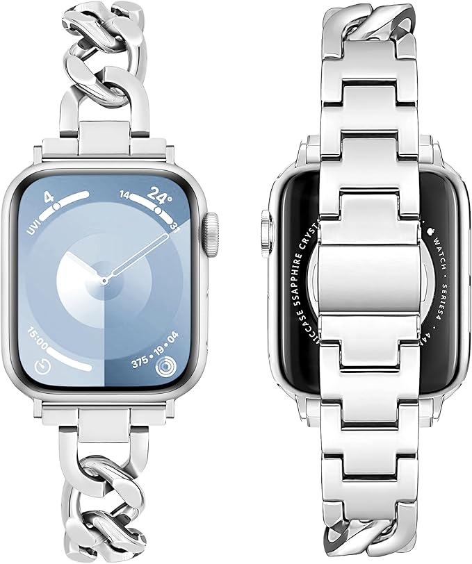 Aniaboho アップルウォッチ バンド 立体リングデザイン メタルベルト apple watch バンド 折りたたみ式バックル 金属チェーン 38mm 40mm 41mm (42mm Series 11 10) iWatch series 11 SE 10 9 8 7 6 5 4 3 2 1対応(シルバー) | KAZESHOP