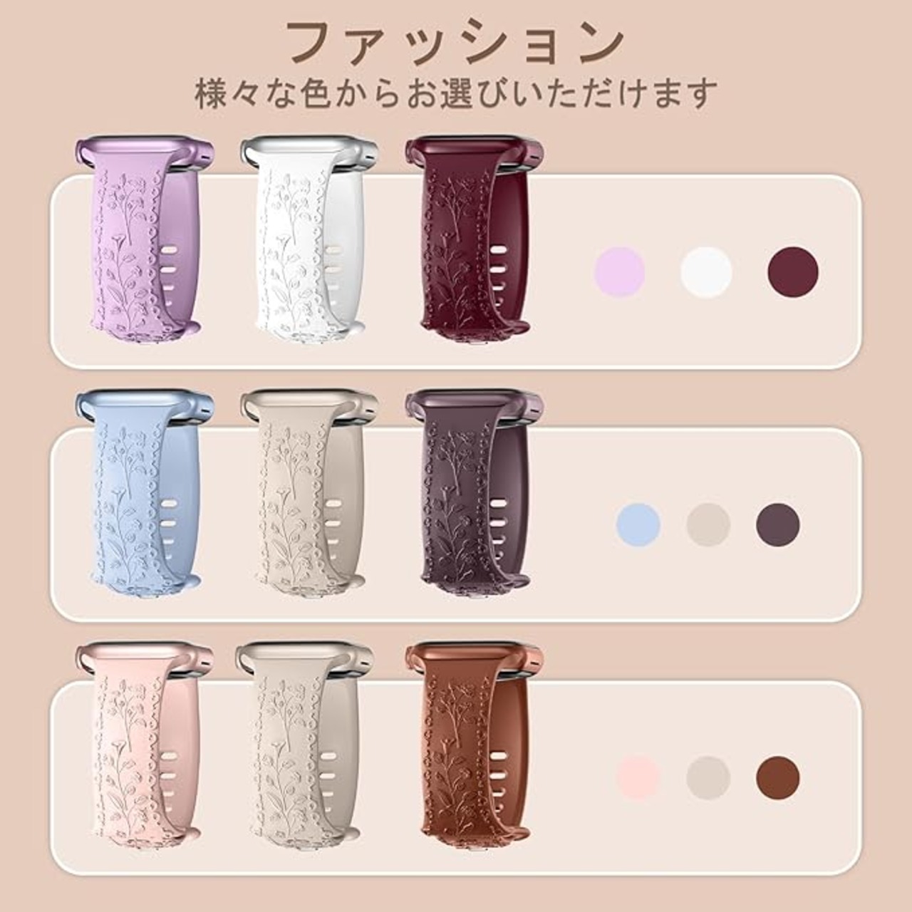 [対応機種・サイズ] 新しいシリコンバンドは女性のために特別にデザインされています。鮮やかな色と上品なスタイルで、どんな服装にもマッチします。Apple Watch Series 11 42mm / 10 42mm / 9 8 7 6 5 4 3 2 1 / SE 3 40mm / SE 2 /SE 全機種に対応できます。 ※本製品はApple watch本体付属いていません(バンドのみです)、ご注意ください