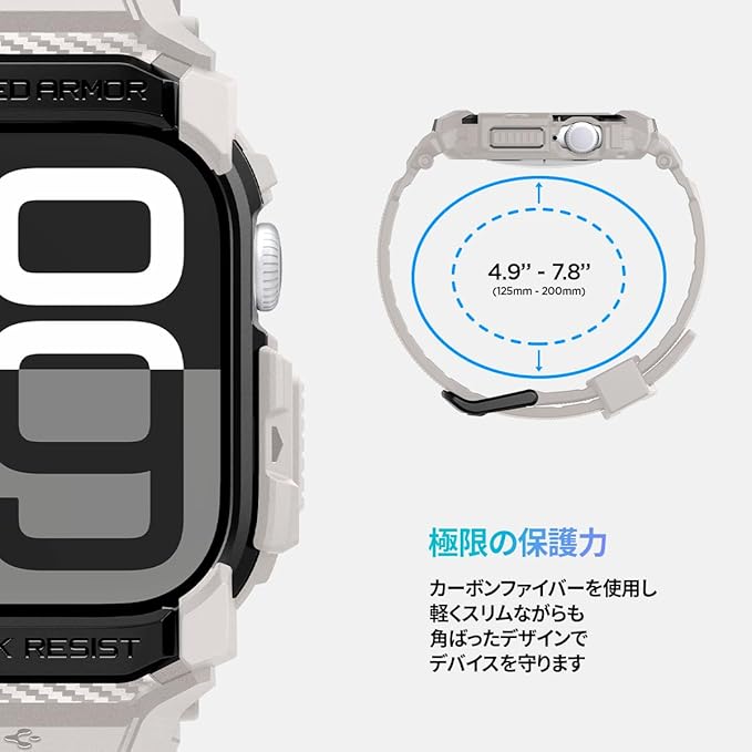 Apple Watch 11 Apple Watch 10 42mm 一体型 バンド ケース 耐衝撃 PC TPU 二重構造 スポーツバンド 落下 衝撃吸収 耐久性 傷防止 ラギッド・アーマー・プロ ACS08593 (デューン・ベージュ) | KAZESHOP