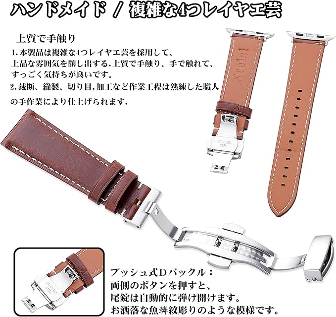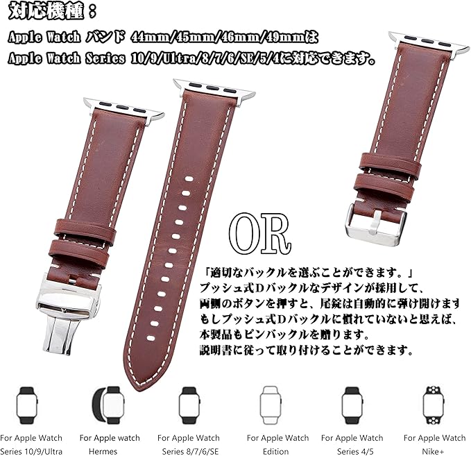 [Xreisi] コンパチブル Apple Watch バンド 44MM 45MM 46MM 49MMコンパチブル アップルウォッチベルト 46mm 本革製 プッシュ式 Dバックル/ピンバックル 長さ調節 通気Apple Watch Ultra2/1,Series10/9/8/7/6/SE/5/4に対応(ブラウン,44mm/45mm/46mm/49mm) | KAZESHOP