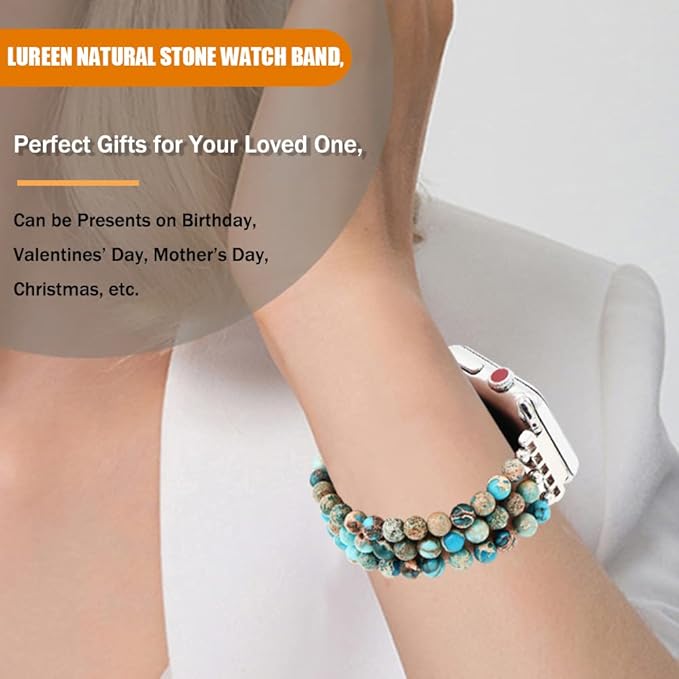 Apple Watchシリーズ8/7/6/SE/5/4/3/2/1用のLuReenブレスレットをお選びください。 LuReenの天然石交換用時計バンドが最適です。 豊富な色の選択が可能な最高級の天然石ビーズで作られたApple Watch交換用ストラップは、ファッション感と絶妙な色を備えており、iWatchを数秒で模様替えし、洗練された上品な時計を手に入れることができます。 Apple Watchをよりファッショナブルでスタイリッシュに見せましょう。