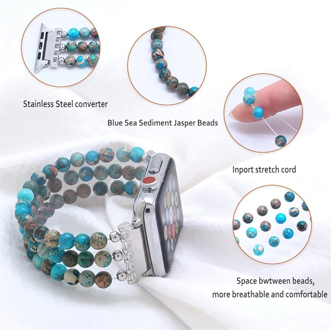[高品質素材] iWatchバンドはハイエンドの天然石ビーズで作られており、自然処理されており、汚染がなく、人体に害はありません。 一般的な時計バンドよりもスタイリッシュで魅力的です。
