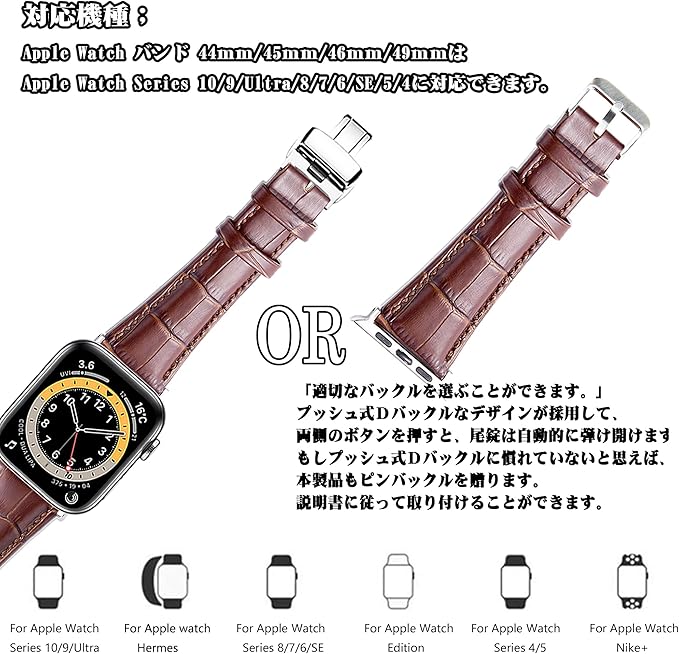 [Xreisi] コンパチブル Apple Watch バンド44MM 45MM 46MM 49MM本革/ビジネス用 アップルウォッチ ベルト46mm 竹の節レザー プッシュ式 Dバックル/ピンバックル 手作りApple Watch Ultra2/1, Series10/9/8/7/6/SE に対応(44mm/45mm/46mm/49mm,ブラウン | KAZESHOP